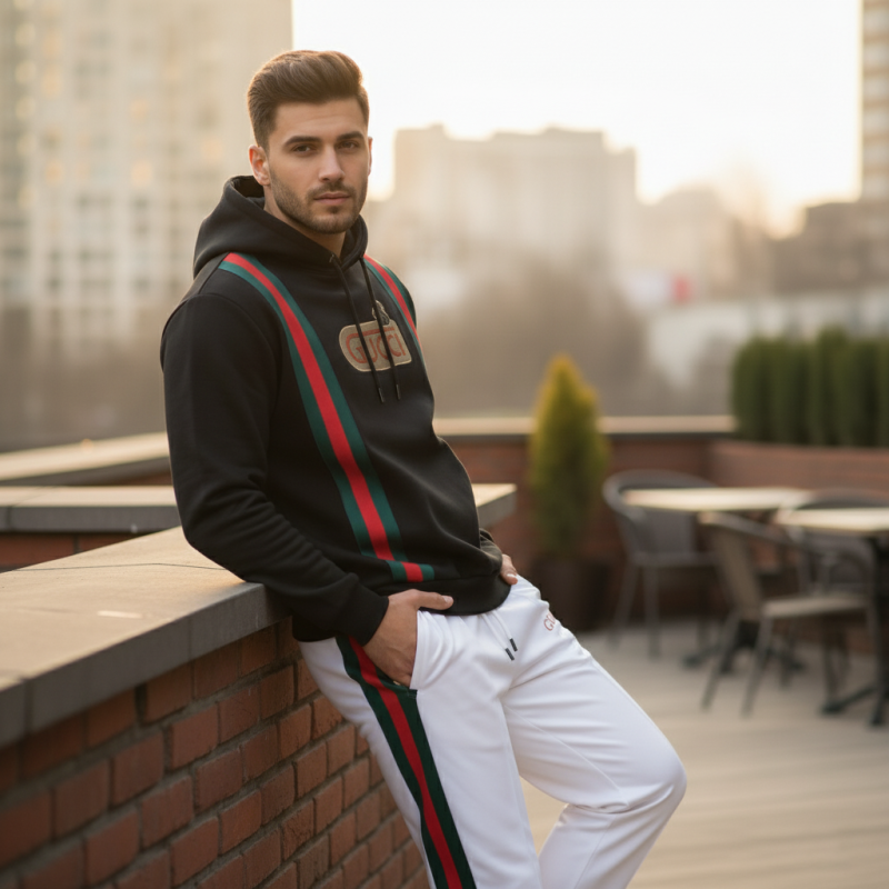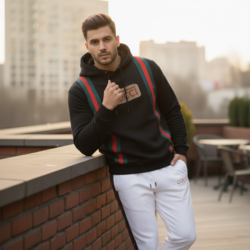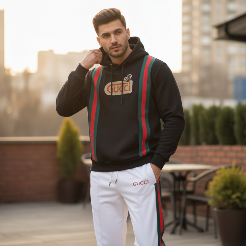 Gucci Premium Black Hoodie And Off white Trouser